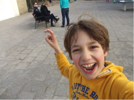 Tiidens de selfielessen experimenteerden de leerlingen er op los: lage standpunten, op de kop aan het klimrek, van boven, schaduwselfies en selfies waarin de achtergrond ook heel belangrijk is.