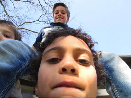 Sverre (9) en Finn (10) bekijken een foto genomen vanuit een laag standpunt en filosoferen over hoe dit perspectief heet. Sverre: ‘Een benedenfoto!’ Finn: ‘Of een nederfoto, want Nederland betekent laagland en deze foto is ook laag gemaakt’.