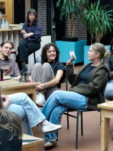 De Juf en de Kunst praat met Jochem Bosselaar. Maria Jacobs spreekt met Jochem Bosselaar: beeldend kunstenaar, schrijver en intern cultuurcoördinator bij Kindcentrum Leeuwensteyn. Na een loopbaan als kunstenaar, schrijver en ondernemer stapte hij over naar het onderwijs, op zoek naar meer stabiliteit én betekenis. Binnen Leeuwensteyn – een jonge school met een nieuw, creatief ingericht gebouw – vervult hij een veelzijdige rol: van cultuurcoördinator en leerpleincoach tot docent beeldend vormen en drama.